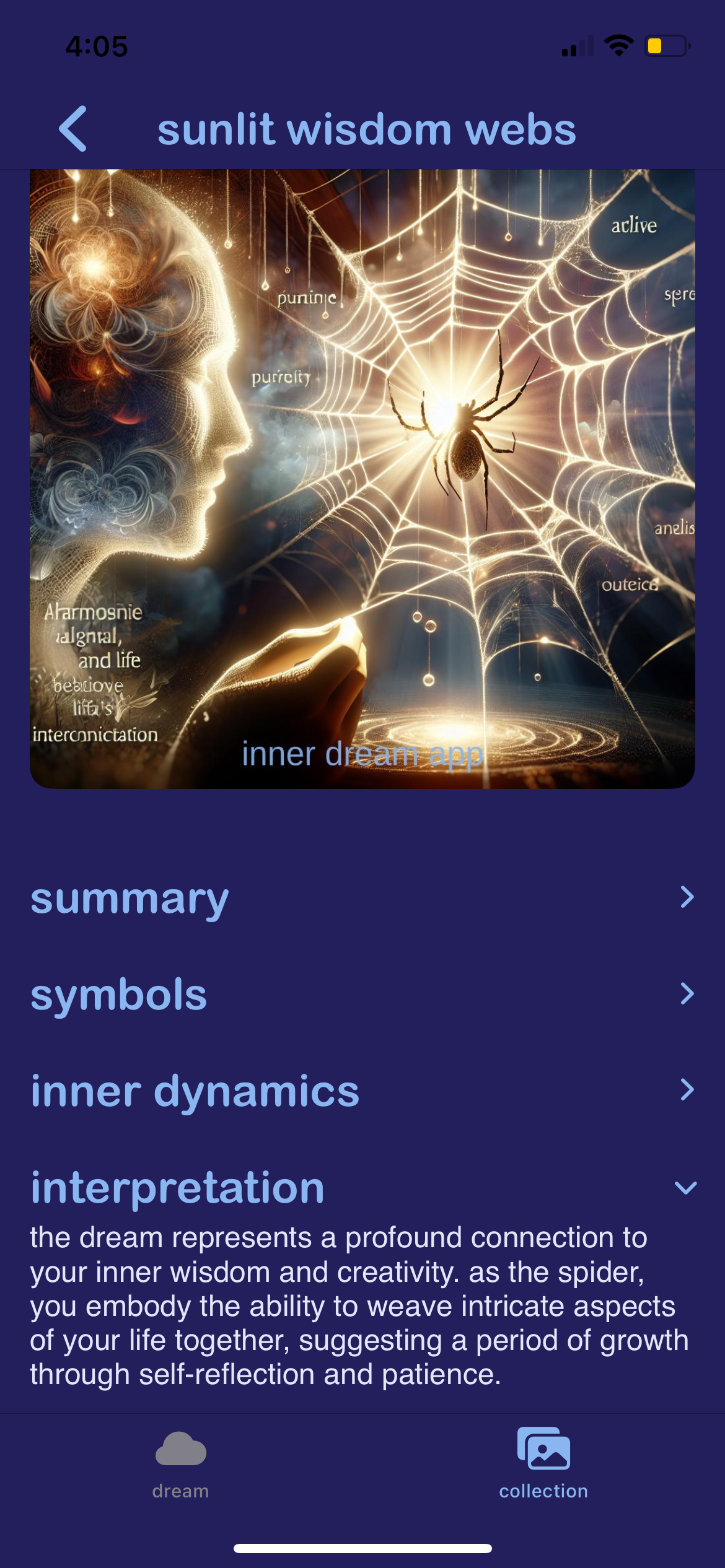 Refine Your Understanding Over Time 🔄 As you continue to use the Inner Dream App, patterns may reveal themselves, providing deeper insights. Dreams often build upon each other, gradually guiding you to greater understanding. Revisiting past dreams with fresh awareness can reveal connections you missed before.